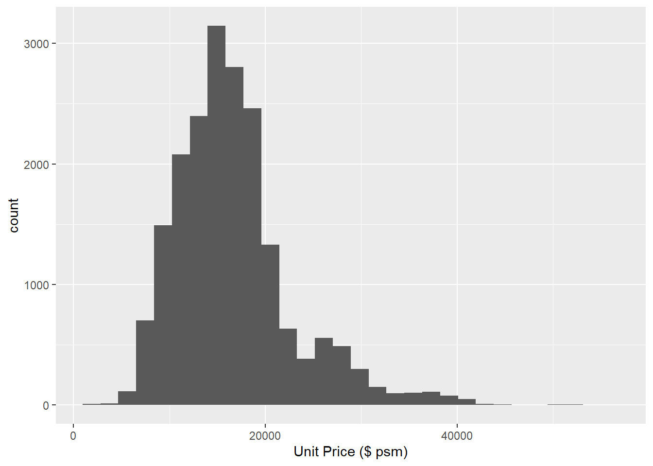 aes(x = `Unit Price ($ psm)`)) +