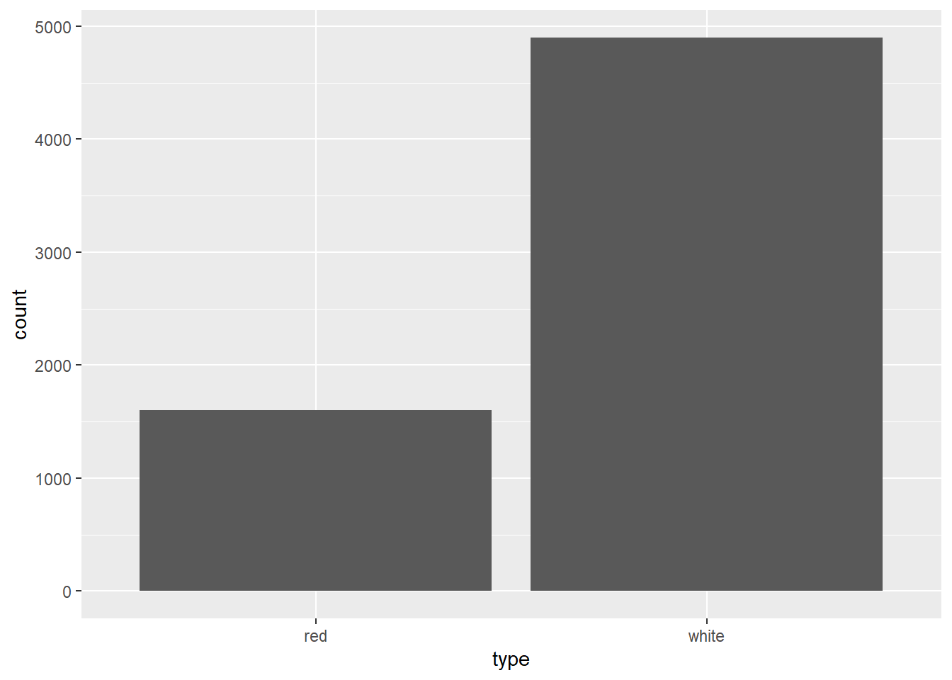ggplot(data = wine, aes(x=type)) + geom_bar()