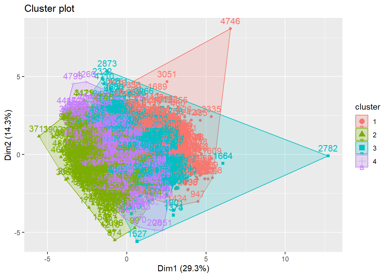 print(kmeans4)K-means clustering with 4 clusters of sizes 757, 978, 1444, 1719